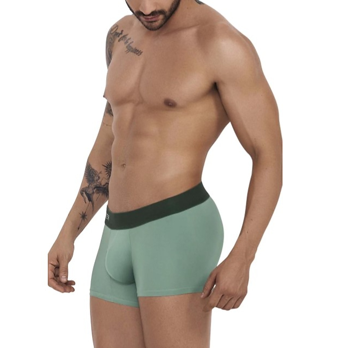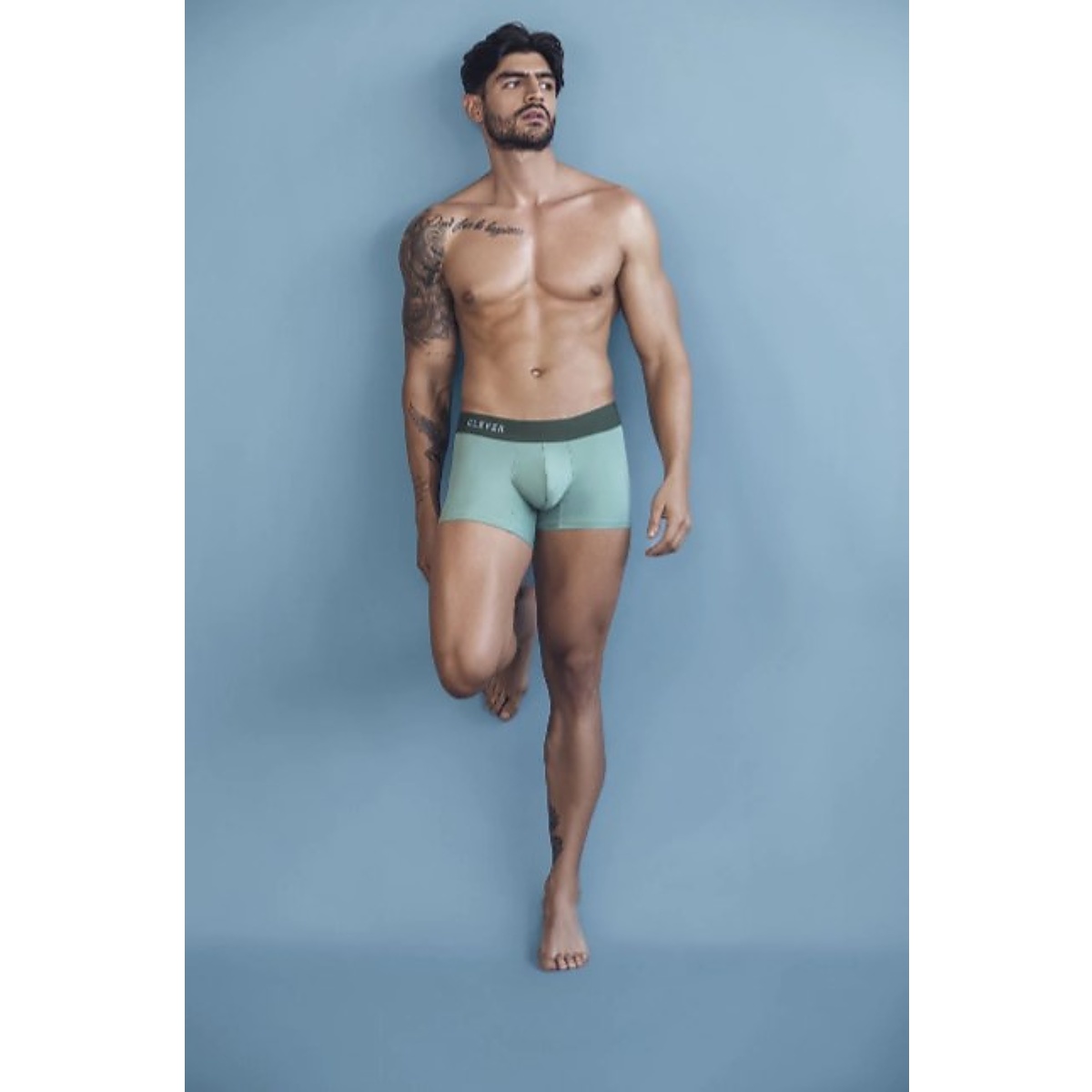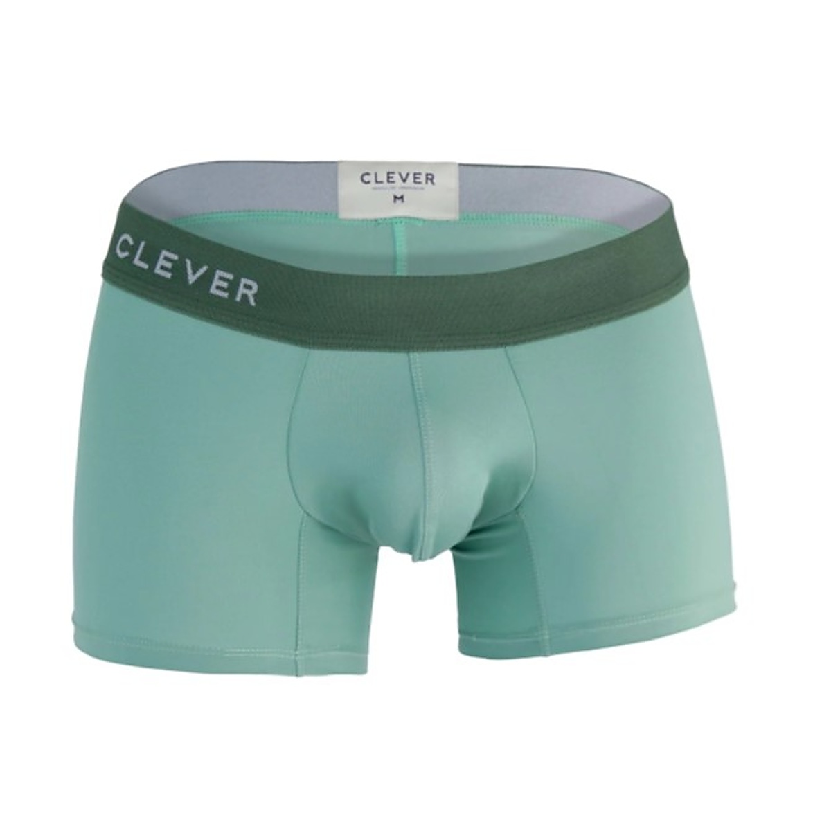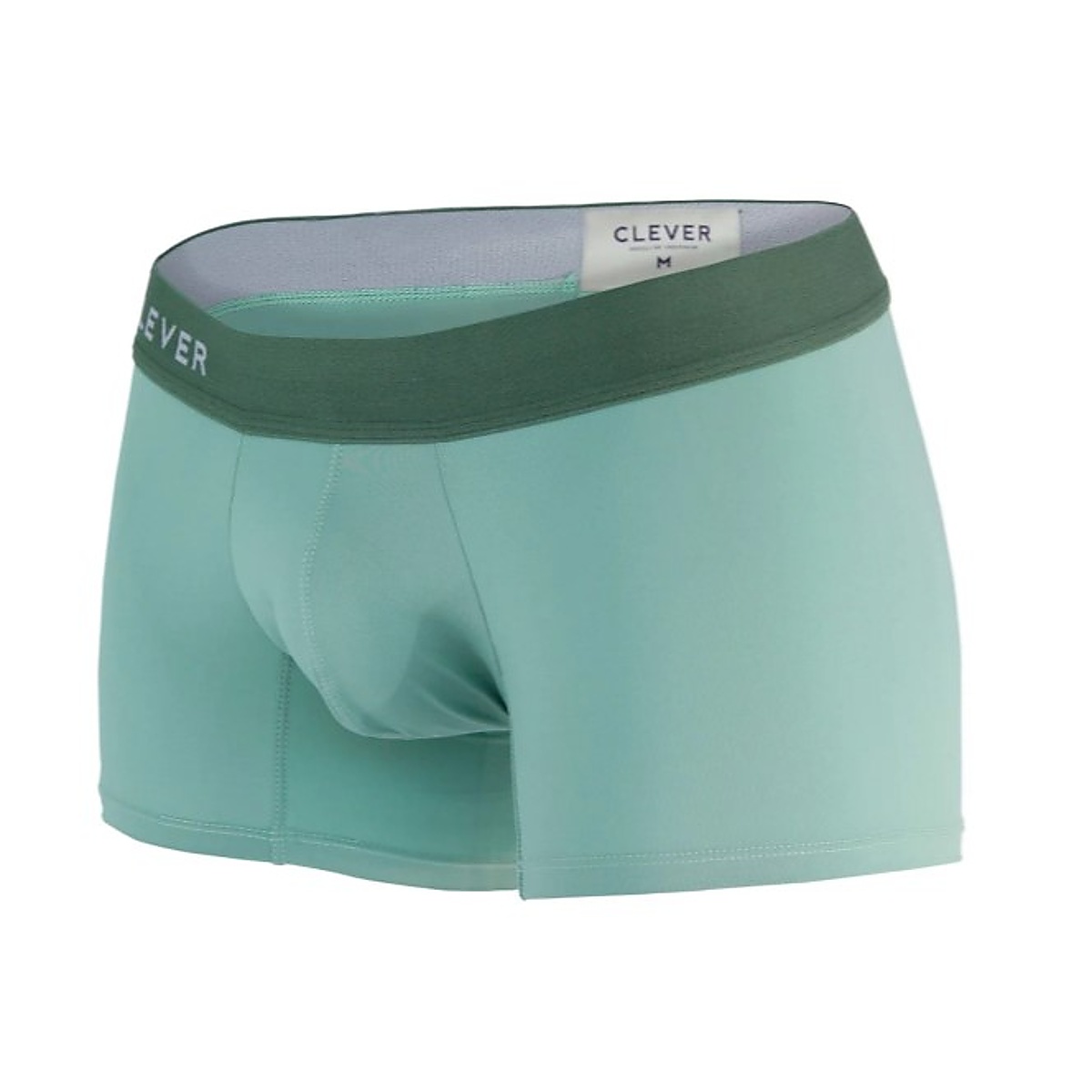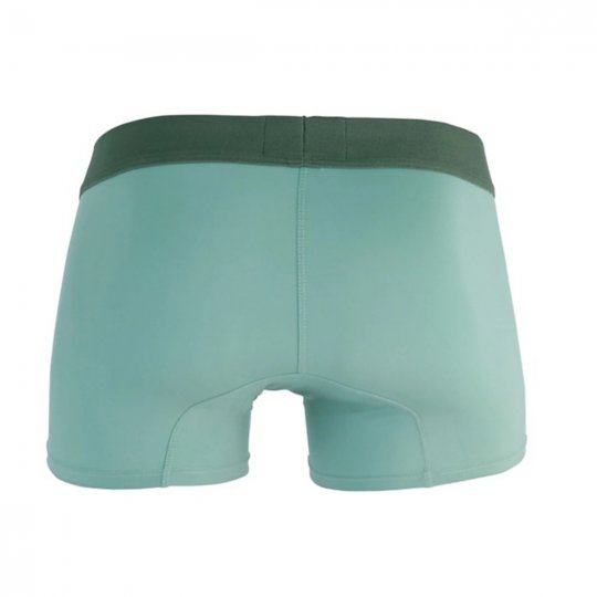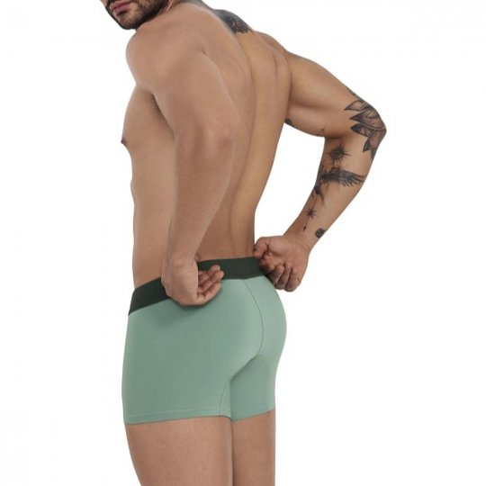 týlové boxerky pre muov CLEVER GRACE v zelenej farbe. Bielizeň perfektne sadne a vynikne v nej zadoček. Vrecko má ergonomickú vloku, ktorá opticky zväčí schované muské prirodzenie. Pevná, no napriek tomu elastická guma v páse aj na stehnách.