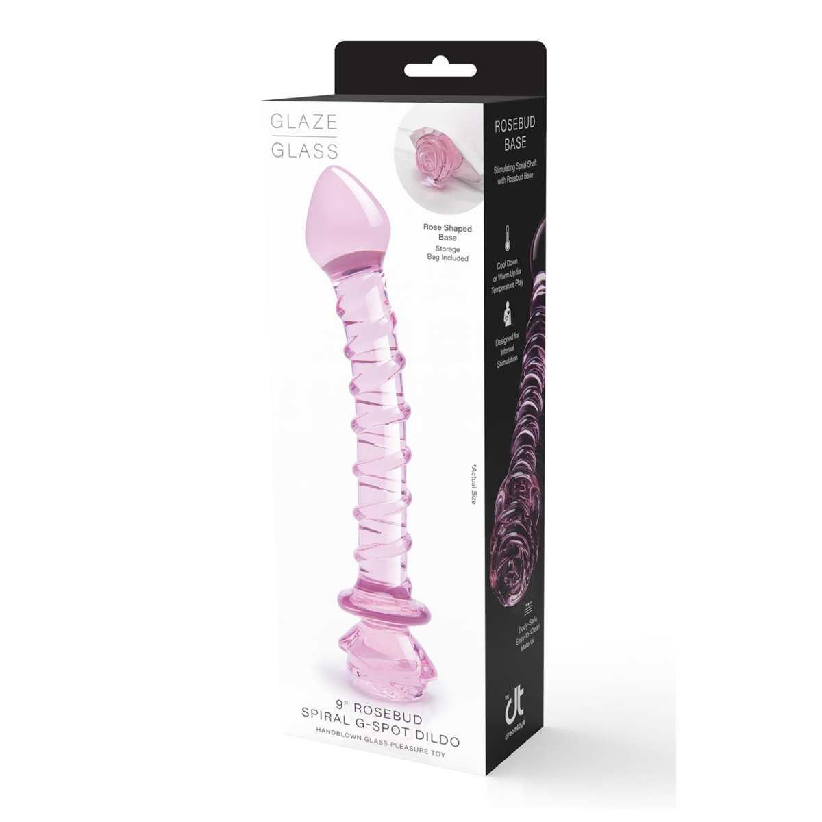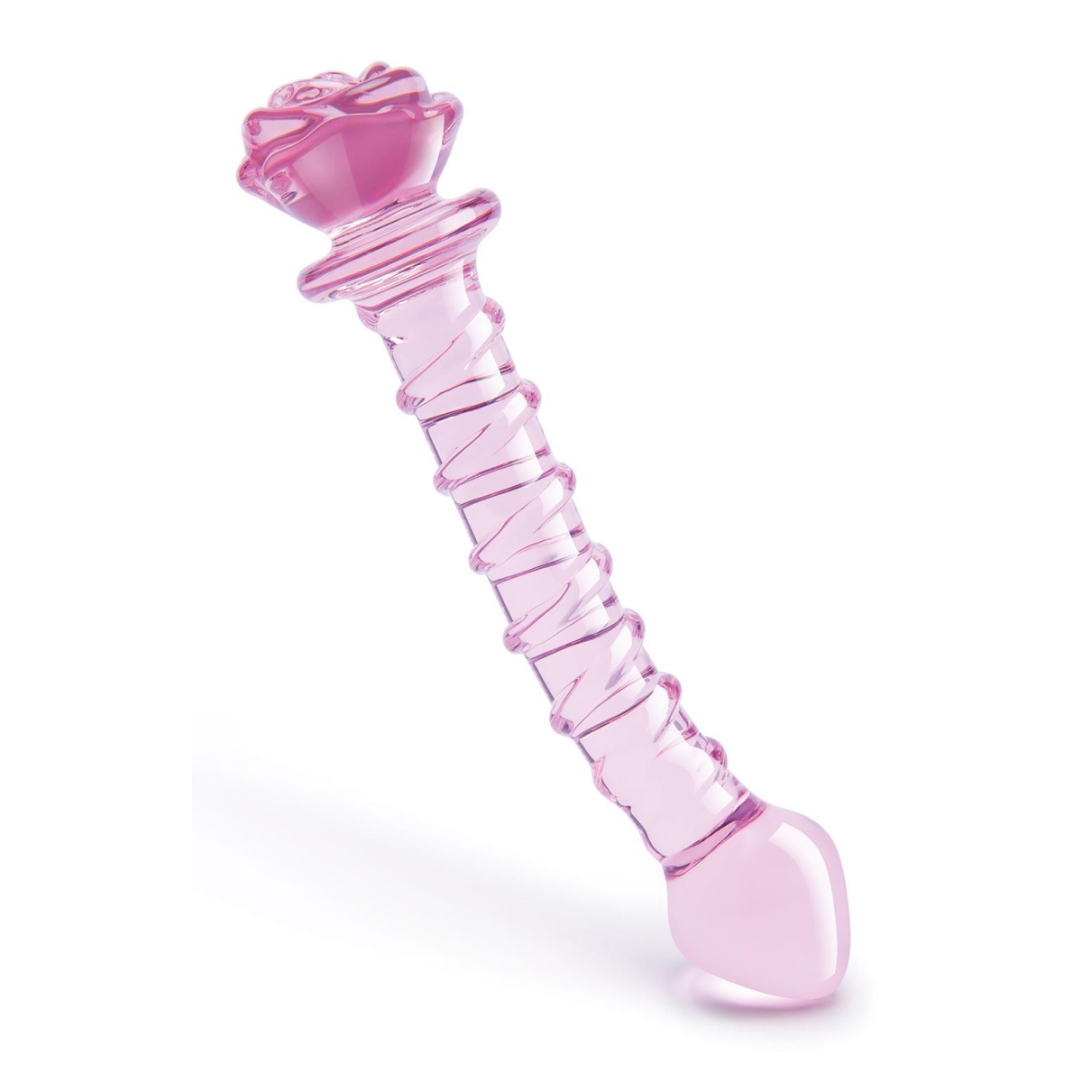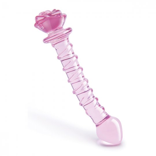 Toto zmyselné dildo výnimočného elegantného dizajnu romantickej ružovej farby vás nadchne na prvý pohľad. Je vyrobené z vysoko kvalitného a výnimočne odolného borosilikátového skla, ktoré vám dopraje nielen dokonale hladký povrch, ale aj mimoriadne vlastnosti. Unikátny tvar pevného zahnutého ramena s výraznejšou zosilnenou špičkou skvele masíruje bod G, zatiaľ čo si môžete užívať vytvorený tlak. Má výraznú stimulačnú špirálovitú štruktúru, ktorá vás bude dráždiť každučkým pohybom a bezpečnostnú zarážku pre vaše maximálne pohodlie. Zakončenie dilda je v podobe decentnej ružičky.