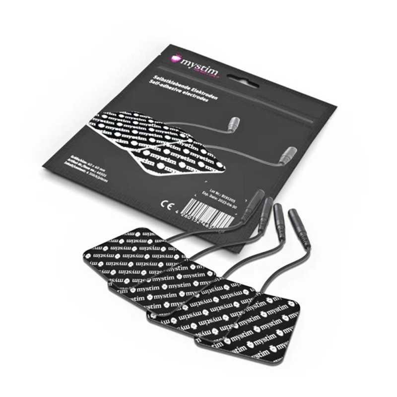 Chcete vyskúšať elektrostimuláciu takmer kdekoľvek na tele? S týmito elektródami nie je nič jednoduchšie. Stačí len pripojiť kábel k elektródam, tie nalepiť na suchú, čistú nepoškodenú pokožku, druhý koniec zapojiť do generátora elektrického prúdu a spustiť. Teraz si už len budete užívať jemné brnenie, rytmické impulzy alebo zmyselné pocity tlaku. Najmä odporúčame vyskúšať v oblasti väčších svalov ako je zadoček, stehná, bruško a v neposlednom rade tiež intímne partie. Veľmi dobrú vodivosť zaistí vodivý gél, ktorým je pokrytá spodná lepiaca strana elektródy. Pre odlepenie elektród neťahajte za kábel, uchopte ho za rožtek a odlepte. Samolepiace elektródy možné používať viackrát vďaka krycej fólii, ktorú po skončení vašich hier nalepíte späť na elektródy. Elektródy idú pripojiť ku všetkým zariadeniam s 2 mm zástrčkou. V balení nájdete štyri samolepiace elektródy o rozmere 4 x 4 cma pre použitie budete potrebovať externé elektrické zariadenie značky Mystim. Keďže zdroj nie je súčasťou balenia, vyberte si z našej ponuky tu. V e-stim sadách tiež nájdete elektródy, ale aj napriek všetkej vašej starostlivosti raz elektródy prestanú lepiť, preto si môžete dokúpiť tieto nové elektródy, prípadne nimi doplniť elektródy súčasné.