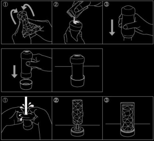 Použitie: Otvorte plastový vrchnák a vyberte masturbátor z čiernej plastovej špirály. Pretočte ho na druhú stranu a aplikujte dostatočné množstvo lubrikačného gélu. Teraz je váš masturbátor pripravený k použitiu.