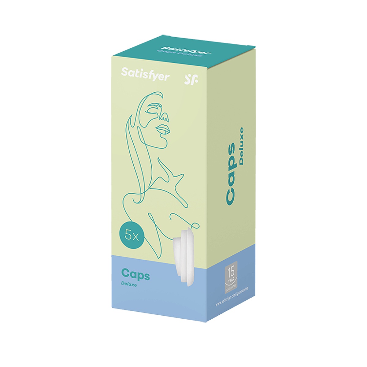 Sada 5 kusov náhradných silikónových nástavcov SATISFYER DELUXE. Satisfyer je revolučnou novinkou v podobe bezdotykového stimulátora klitorisu, ktorý ponúka ženám vďaka novej technológii úplne nové sexuálne zážitky a prudké orgazmy. Sada 5 kusov je vyrobená z hebkého hypoalergénneho silikónu. Vám budú nástavce slúžiť dlho a zaručia vám v spojení so SATISFYER DELUXE veľa, veľa erotických zážitkov.