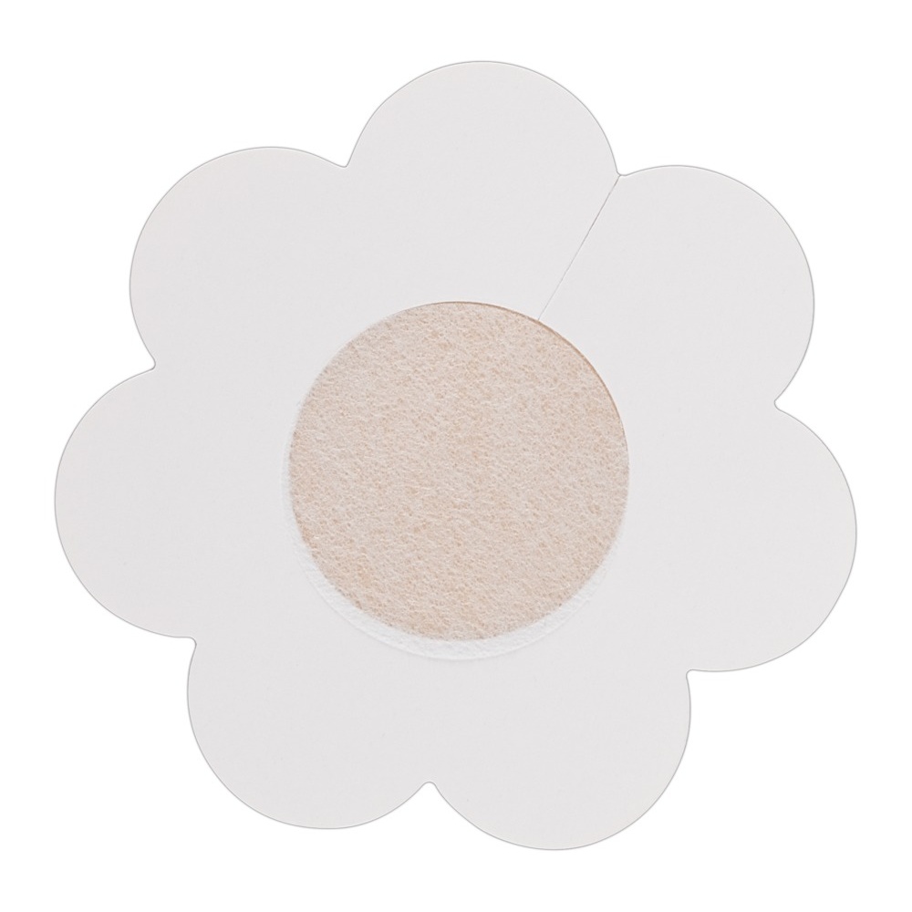 Diskrétne nálepky na bradavky Cloth Nipple Cover v tvare kvetiny od značky Cottelli Collection v telovej farbe sú vhodné pre ženy, ktoré nerady nosia podprsenku alebo majú odev, pod ktorý spodnú bielizeň nemožno obliecť. Nálepky disponujú vsadkou uprostred pre ešte komfortnejšie nosenie a spoľahlivo prekryjú aj veľmi výrazné bradavky. Použitým materiálom je textília so silikónovým lepidlom. V balení nájdete hneď 6 párov.