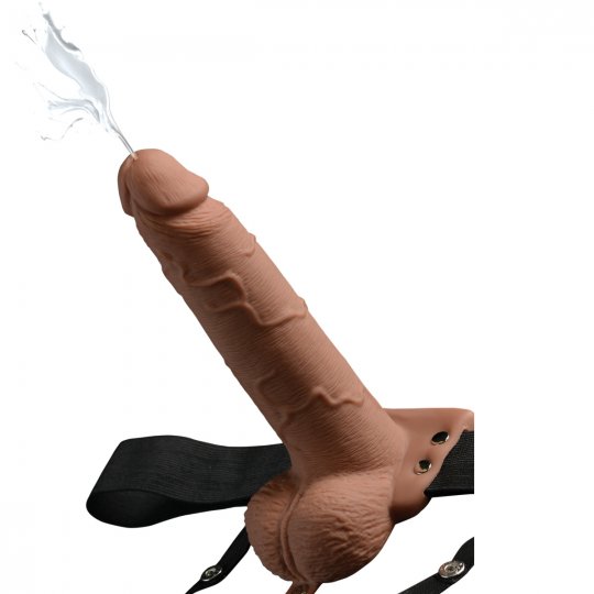 Chcete svoju partnerku potešiť cez vaše problémy s erektilnou dysfunkciou? Nenechajte sa odradiť a premeňte sa zasa v žrebca, ktorý dopraje svojej drahej polovičke unikátne sexuálne dobrodružstvo nerozoznateľné od originálu. Objavte tento striekajúci nasadzovací penis s postrojom, ktoré vám ponúkne autentické hrátky. Vzrušujúce spracovanie zahrňujúce všetky detaily doplní rafinovaný integrovaný balónik, ktorý posunie vaše šantenie na tú najvyššiu možnú úroveň potešenia. Straťte sa vo vlastných predstavách a vychutnajte si poriadne mokré orgazmy.