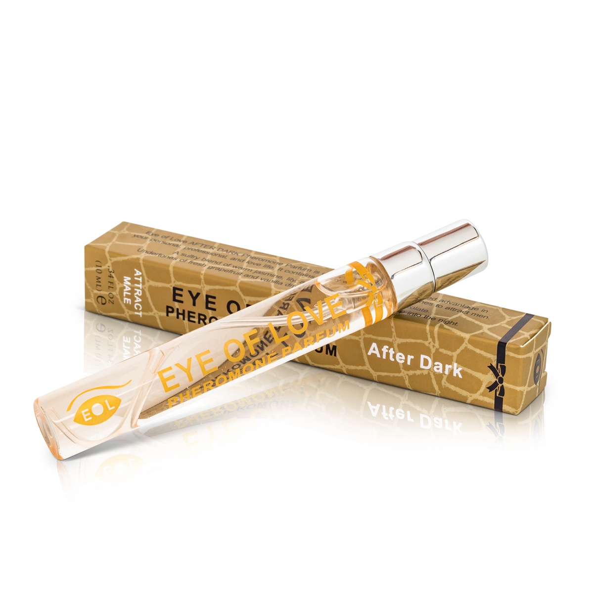 Dámy, buďte neodolateľne príťažlivé vďaka feromónom obsiahnutým v parféme Eye of Love AFTER DARK. Balenie s obsahom 10 ml sa ľahko schová v každej kabelke, takže ho budete mať kedykoľvek k dispozícii a keď budete cítiť, že chcete oslniť toho prevého, nie je nič ľahšie, než na seba naniesť tenký film tejto sviežej vône. Príjemná zmes jazmínu, ľalie a krémovej sladkej bielej čokolády, s podtónmi šťavnatého grapefruitu a vanilky v spojení s feromónmi zabezpečí úspech u nežnejšieho pohlavia. Stačí strieknúť na krk, dekolt či odev. Značka Eye of Love nepoužíva žiadne vedľajšie produkty živočíšneho pôvodu, ani netestuje produkty na zvieratách. Používa len vysoko kvalitné čisté a bioidentické feromóny.