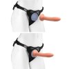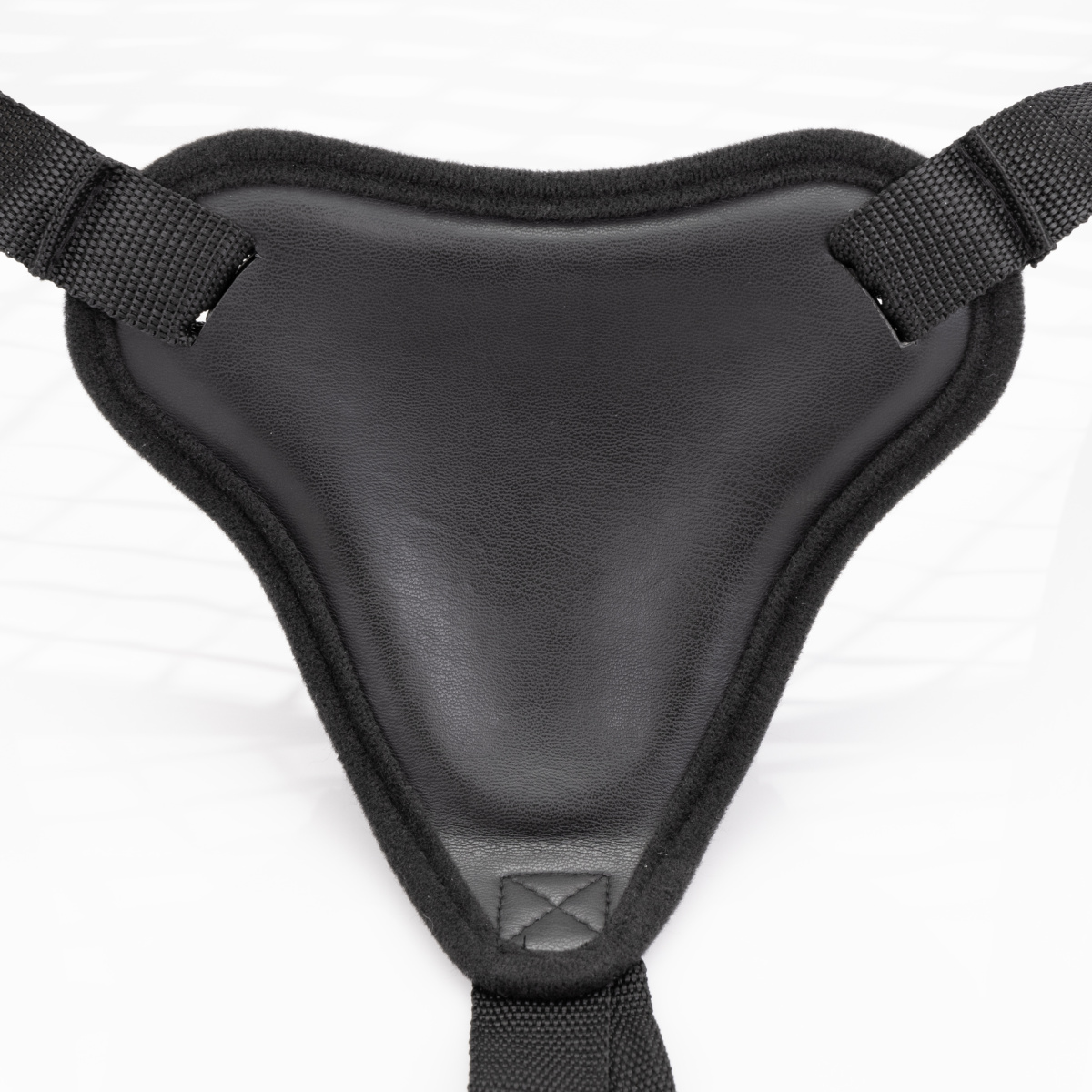 Tento sympatický postroj v originálnom designe sexy čiernej farby si zamilujete. Predný panel je vyrobený z vysoko kvalitnej umelej kože najvyššej kvality v kombinácii s plyšovými lemami, ktoré nerežú a ponúknu maximálne pohodlie pre nositeľov. Panel je ergonomicky tvarovaný, aby perfektne padol na svoje miesto a vďaka nylonovým popruhom a zosílenému bedrovému pásu skvelo a pevne drží na tele. Popruhy disponujú nastaviteľnými sponami a sú ukončené zapínacou skobou z odolného plastu, čím spríjemní a urýchli obliekanie. Rafinovaná plocha z hodvábne jemného silikónu vytvrdeného platinou zaručí vysokú priľnavosť k prísavke dilda a chváli sa priehlbinou, ktorá vytvorí ešte väčší a silnejší podtlak pre dokonalú a silnú fixáciu dilda. Preto budú držať ako pribité, ale dovolí tiež ich rýchlu a nenáročnu výmenu.