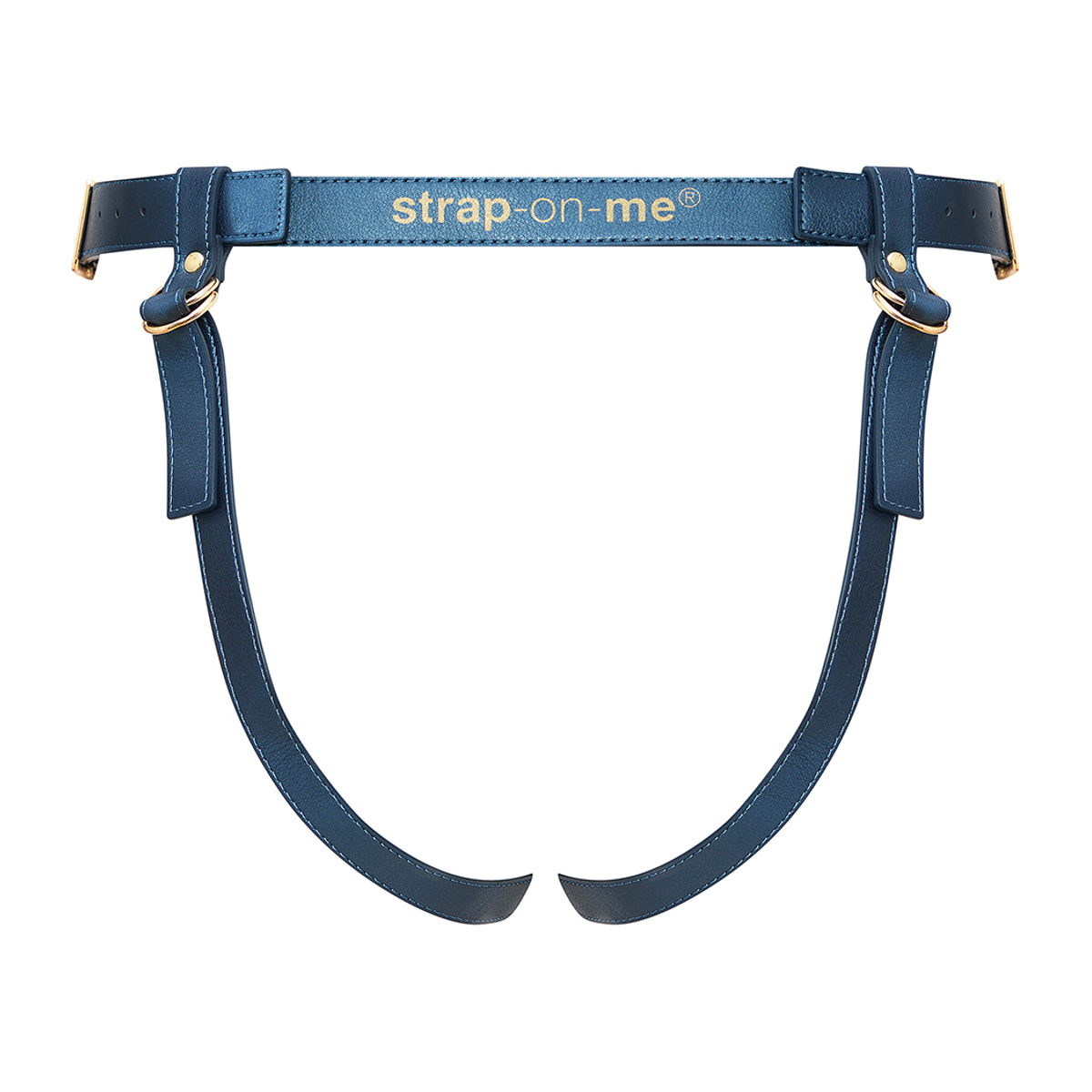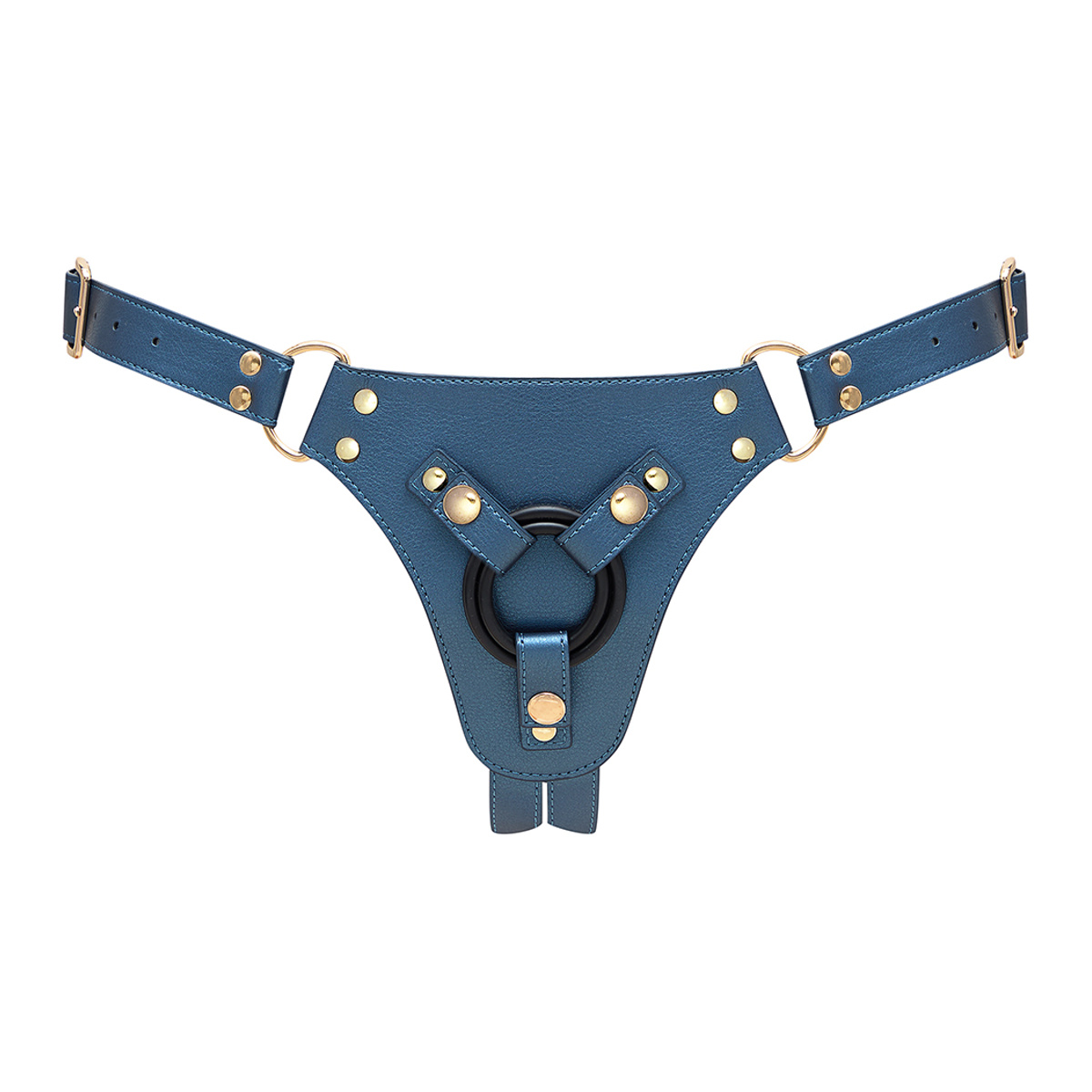 Strap-on v metalovo modrej farbe skvelo podtrhne vaše krivky vďaka nastaviteľným popruhom, ktoré dokonale zdôraznia váš odhalený zadok a to pomocou pevných praciek v zlatom prevedení. Je vyrobený z imitácie kože, ktorá dodáva materiálu realistický vzhľad a textúru podobnú pravej koži, ale je vyrobená z umelých alebo prírodných vlákien. Tento materiál je obľúbený pre svoju odolnosť a ľahkú údržbu. Pás sa prispôsobí takmer akémukoľvek typu postavy s obvodom 69 - 127 cm. Dildo alebo vibrátor jednoducho umiestnite v prednej časti pomocou silikónových krúžkov, ktoré sú o priemere 4,5 a 5,5 cm. Len si vás dovolíme upozorniť, že dildá ani vibrátory nie sú súčasťou balenia.