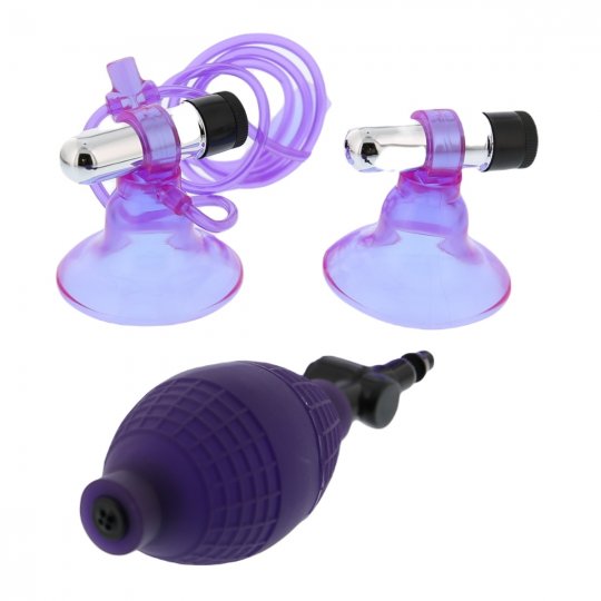 Máte citlivé bradavky a užívate si každý dotyk? Potom vyskúšajte vojsť do spálne s erotickou pomôckou, ktorá podporí vašu túžbu a znásobí chtíč. Prísavky na bradavky Seven Creations HI-BEAM v sexi fialovej farbe splnia vaše najtajnejšie predstavy. Dve prísavky sú vyrobené z mäkčeného PVC materiálu, ktorý vám zaistí ľahkú poddajnosť a napriek tomu výraznú pevnosť. K prísavkám sú pripojené hadičky, ktoré ústia do mäkkého balónika. Jeho stlačením odvediete vzduch z vnútorného priestoru prísaviek, čím dôjde k podtlaku. Ten zaručí prekrvenie bradaviek aj dvorcov a následné zvýšenie ich citlivosti. Na rýchle a jednoduché vypustenie podtlaku navyše disponuje bezpečnostným ventilom. Pre ešte zaujímavejšie dobrodružstvo sú obe prísavky vybavené kovovou vibračnou patrónou, ktorá k bradavkám prenesie silnú vibráciu, čo pre vás bude maximálne vzrušujúce. Vibrácia je plynule regulovateľná jednoduchým otáčaním uzáveru. Prísavky nie sú vodeodolné a neodporúča sa ich používanie v sprche. V balení nájdete aj 6 batérií typu LR44, ktoré poháňajú patróny.