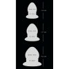 Rozmery: celková dĺžka najmenšieho 5,2 cm, hĺbka vkladania 4,5 cm, priemer max. 3 cm, celková dĺžka stredného 5,7 cm, hĺbka vkladania 5 cm, priemer max. 3,9 cm, celková dĺžka najväčšieho 6,2 cm, hĺbka vkladania 5,7 cm, priemer max. 4,9 cm