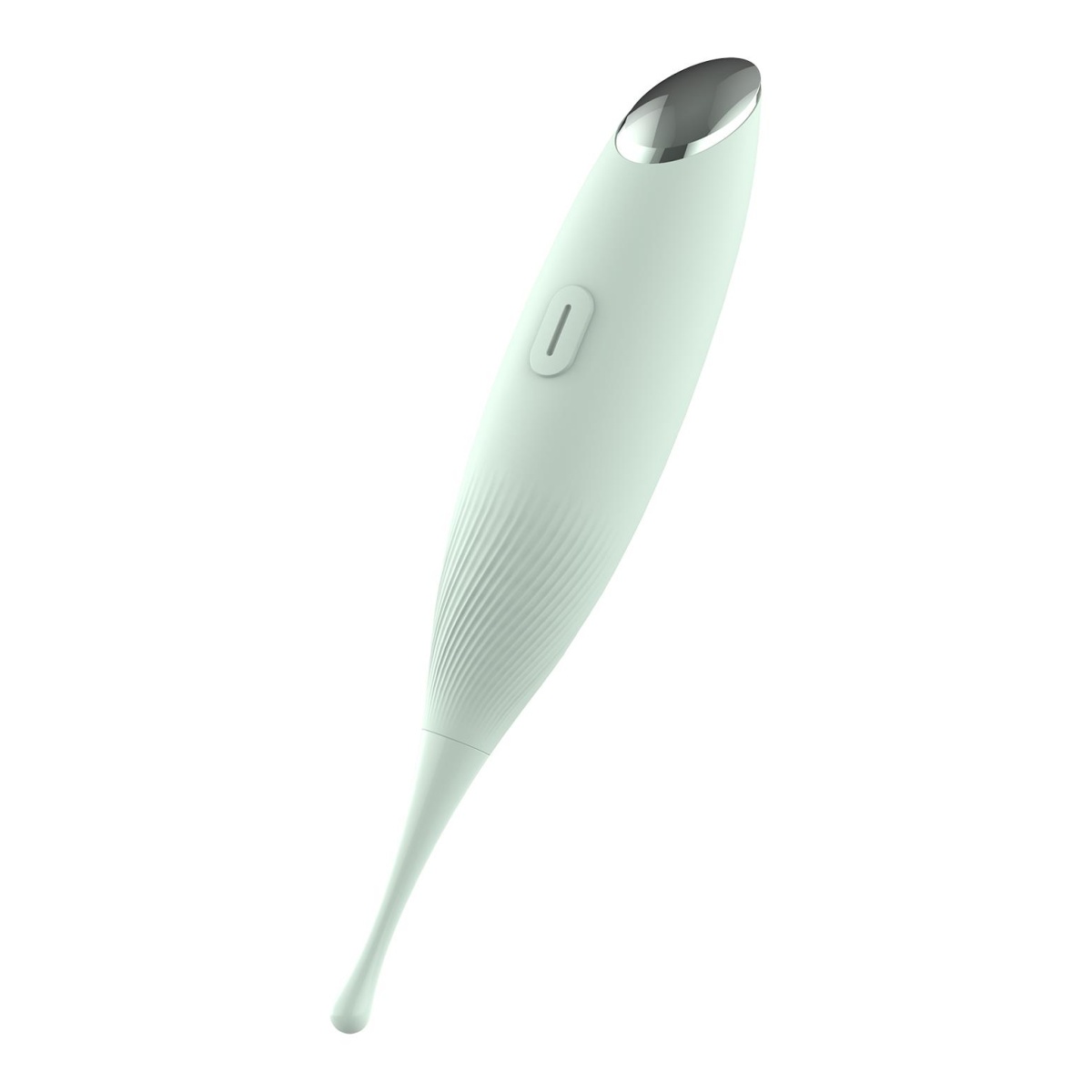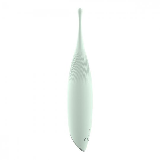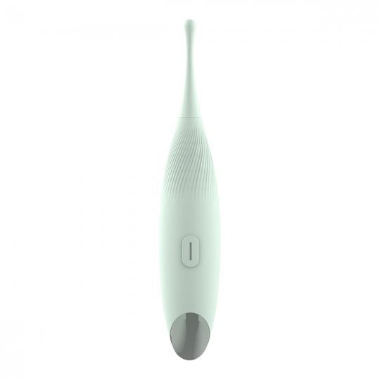 Unikátny a úplne elegantný dizajn mätovo zelenej farby vám vykúzli úsmev na perách. Stimulátor je vyrobený z odolného ABS plastu a hodvábne jemného silikónu prvotriednej kvality, ktorý je nezávadný pre ľudskú pokožku a pohladí vaše partie s neuveriteľnou nežnosťou. Disponuje dlhou tenkou stopkou, ktorá je na konci ľahko rozšírená v tvare kvapôčky. Ozdobené telo stimulátora lesklou plôškou má decentné vrúbkovanie, dobre sa drží v ruke a dopraje pohodlné ovládanie jediným tlačidlom.