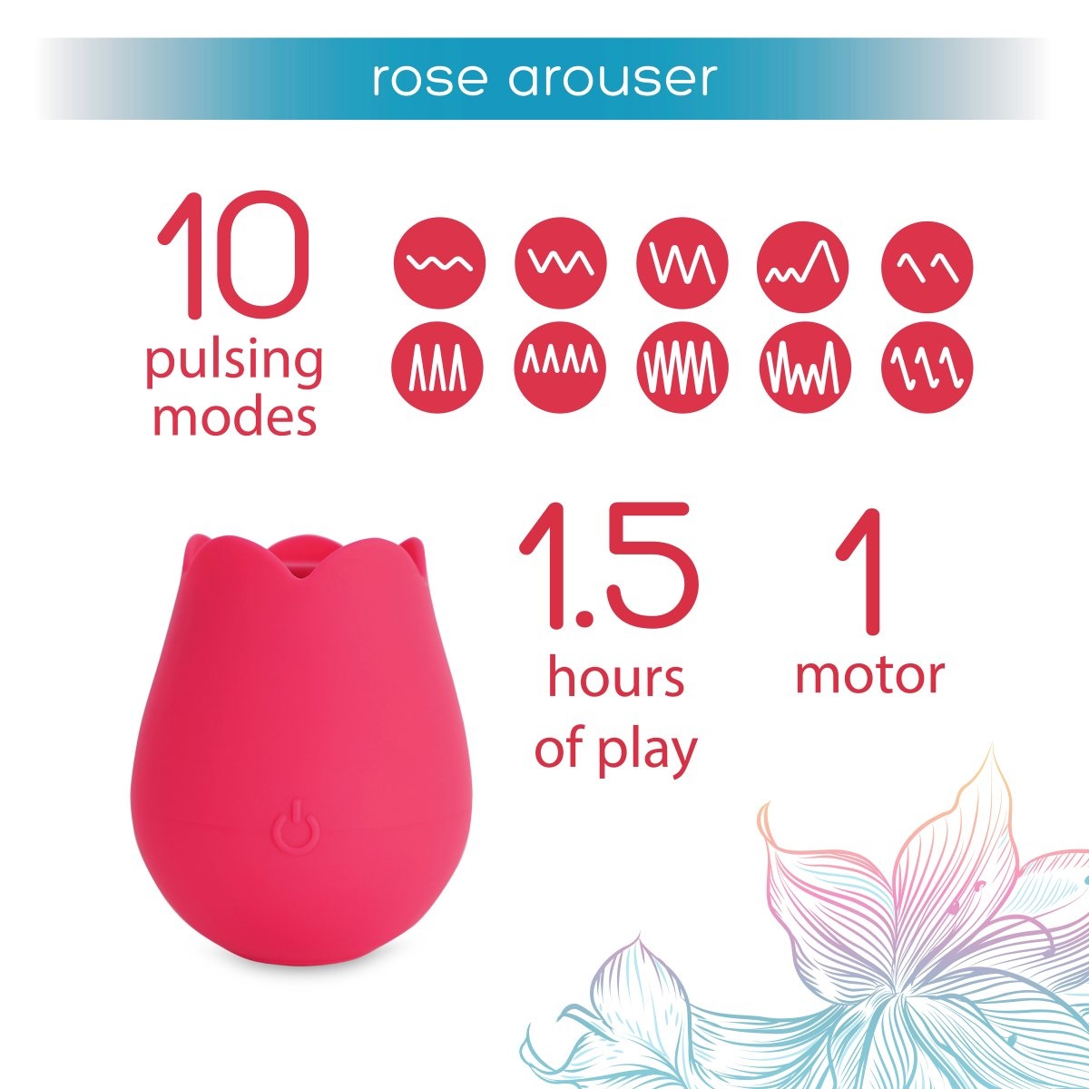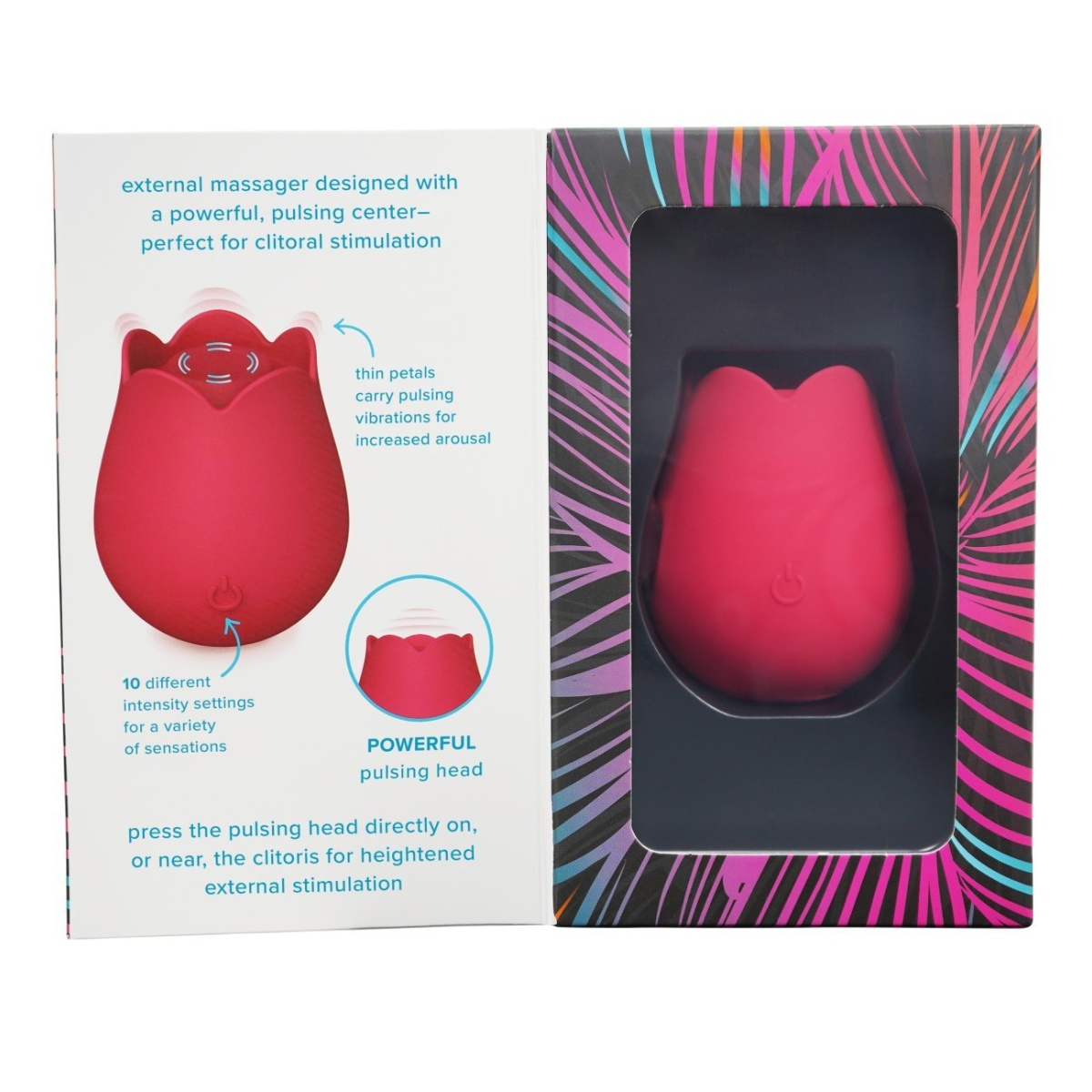 Dominantou tohto nenápadného stimulátoru je vysoko výkonný motor, ktorý vás na svoju silu prekvapí relatívne tichým chodom. Ten rozochveje mechanizmus pod membránou, takže bude náustok dunivo poskakovať v dychberúcej intenzite 10 pulzačných rytmov. Priložením na klitoris si môžete zvoliť jemné či búrlivé tempo, ktoré vám poskytne delikátne vlny potešenia, kým vás celkom nepohltí nastupujúci výbuch slastných orgazmov. Pri krúživom pohybe budú okvetné lístky ľahko hladiť pokožku a stimulovať väčšiu oblasť vašich citlivých partií.