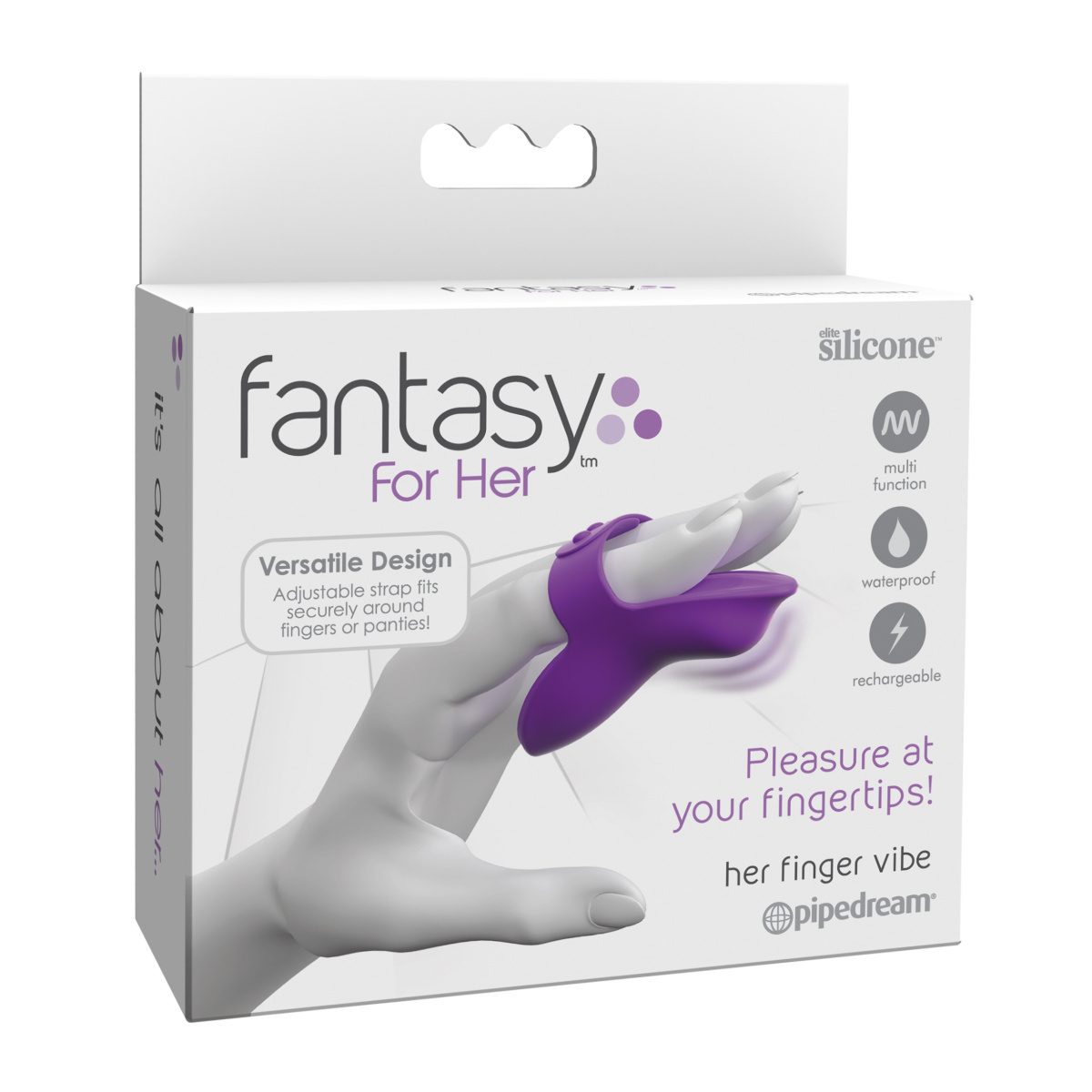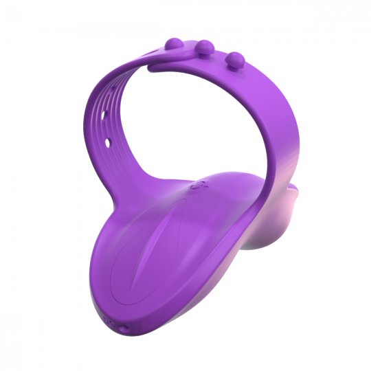 Tento stimulátor v elegantnom modernom designe fialovej farby zdvihne tep vášho srdca. Je vyrobený z hodvábne jemného silikónu, ktorý pohladí vaše partie s úplnou nežnosťou a je celkom nezávadný pre ľudskú pokožku. Jeho flexibilné telo má ergonomický tvar, aby sa skvelo prispôsobil vašej anatómii a disponuje zvýšeným zaguľateným bodom, ktorý presne nájde svoj cieľ. Pružný nastaviteľný pásik ho pevne zafixuje na prstoch alebo vonkajšej strane nohavičiek. V strede tela potom nájdete jediné tlačidlo a zo spodnej strany má port pre nabíjanie.
