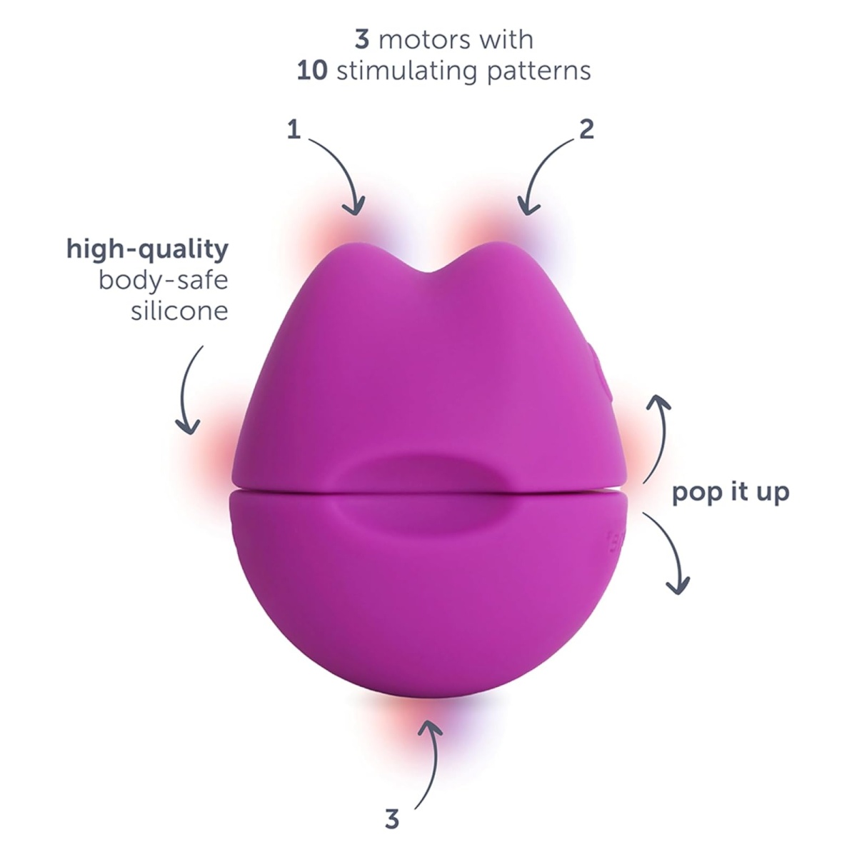 Tri diskrétne a napriek tomu výkonné motory vám ponúknu fantastických 10 vibračných a pulzačných rytmov, ktoré si vychutnáte plnými dúškami pri každom kontakte s pokožkou. Každý motor je strategicky umiestnený tak, aby zaručil rovnomerné aj cielené rozloženie vibrácií podľa vašej aktuálnej nálady. Môžete si tak dopriať buď široké hladenie celých partií, alebo presnú stimuláciu erotogénnych bodov, ktoré si hovoria o zvýšenú pozornosť.