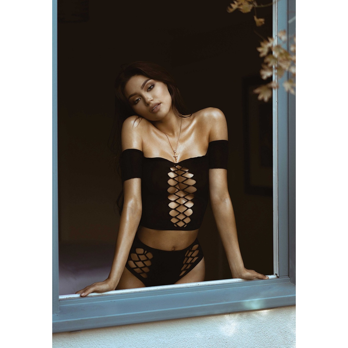 Súprava je vyrobená z polopriesvitnej látky, ktorá je truktúrovaná a hebká na dotyk a vežmi pruná, take sa prispôsobí vaim potrebám a krivkám. Rukávy padajú na pae, čím odhalia ramená a dekolt a podčiarknu vau enskos. Strih spodnej časti je rovnaký ako pri brazílskych nohavičkách, take odhalí celé pozadie a predĺi vae ladné nohy.
