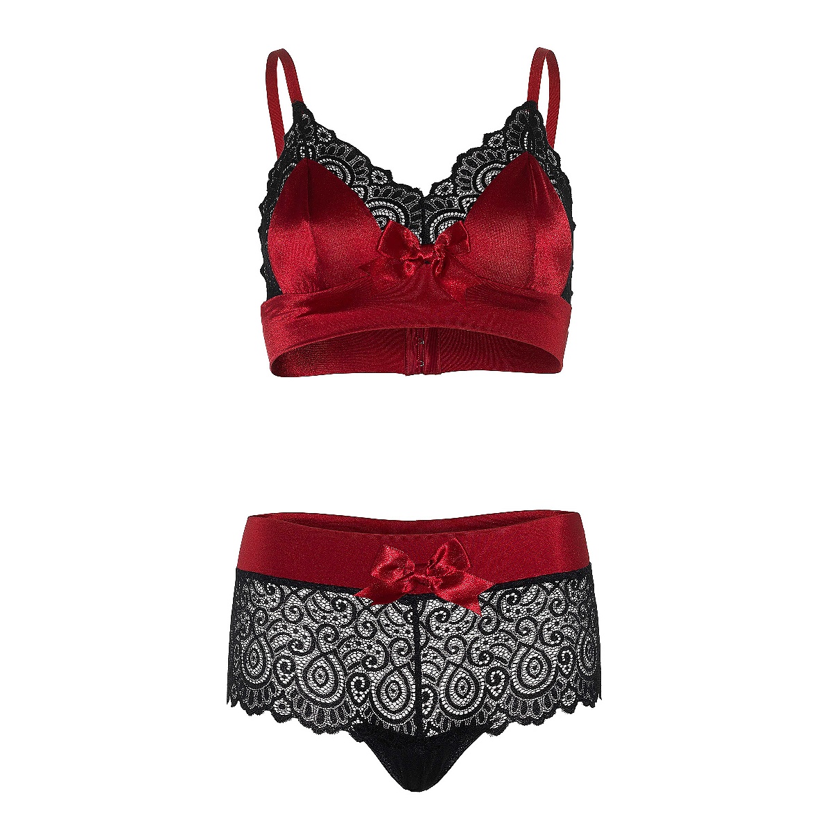 Súprava Leg Avenue Satin Spandex Bralette and String červeno-čierna