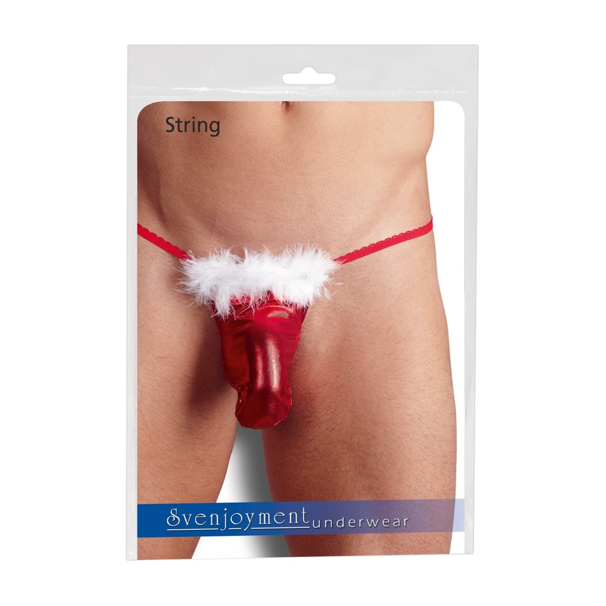 Buďte tohtoročné vianoce originálny a nadežte svojmu miláčikovi pod stromček tieto roztomilé tangá s vianočným motívom. Tangá sú ité z kvalitného červeného lesklého materiálu, v páse ich zdobí biele jemnučké páperie. Tangá sú dodávané v univerzálnej vežkosti SL.