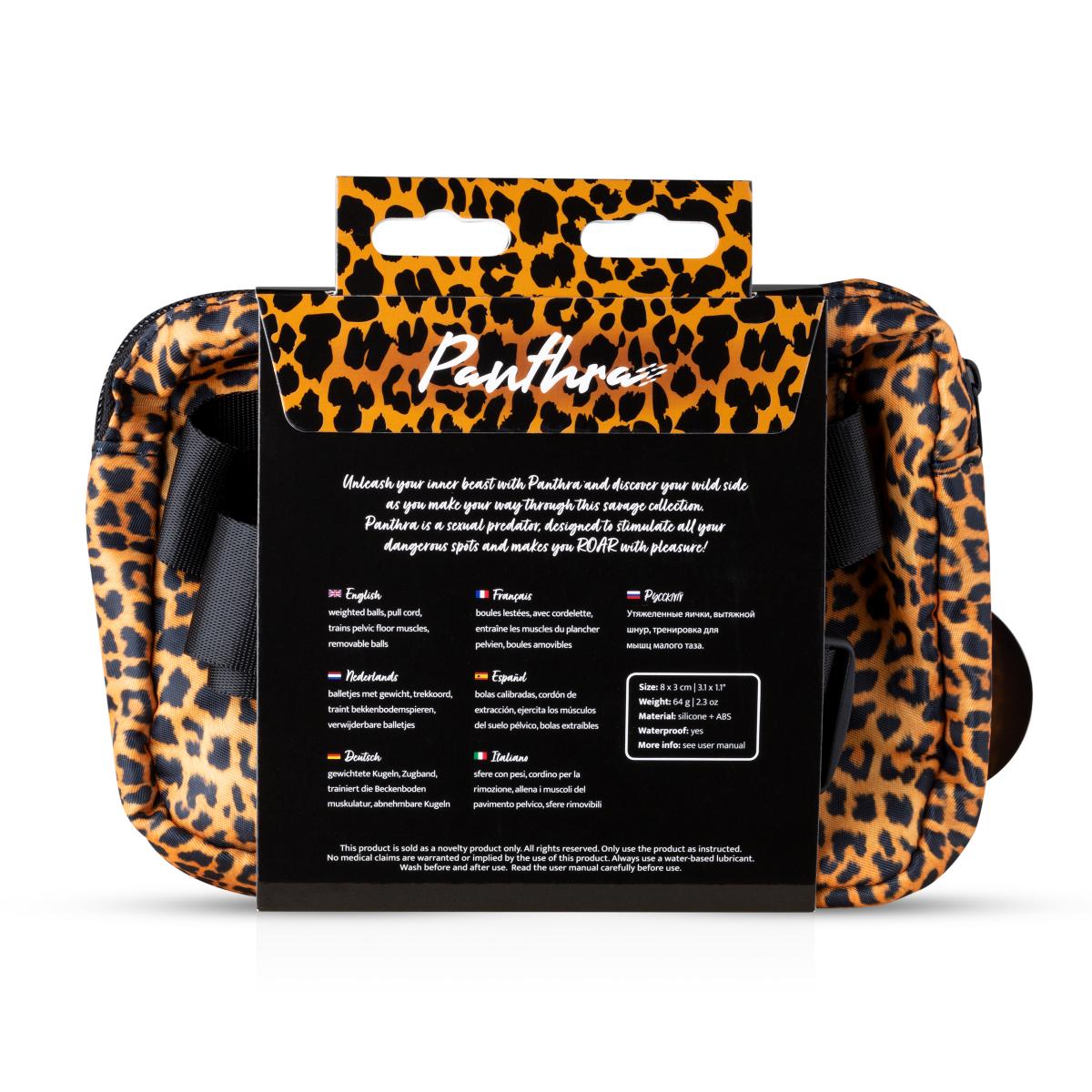Užite si erotickú pomôcku, ktorá vám poskytne zmyselné zážitky s vedľajším efektom pre vaše zdravie. Siahnite po týchto venušiných guľôčkach Panthra Zane Geisha Balls a premeňte sa v dravú šelmu, ktorá vie čo chce. Užijete si vzrušujúce intímne momenty a posilnite svaly svojho panvového dna, čo má vynikajúce výsledky v mnohých smeroch života. Sú vďaka svojej veľkosti vhodné pre začiatočníkov aj pokročilých. Dve guľôčky vyrobené z kvalitného odolného ABS plastu, ktorý je nezávadný pre telo a pokožku sú v úchvatnom leoparďom dizajne. Čierne púzdro s dvojitým manipulačným pútkom je z ultra jemného a zamatovo hebkého silikónu prvotriednej kvality. Je pružné, mäkké a flexibilné a ponúkne vám okienko v tvare srdca. Celý komplet váži 60 gramov. Vnútri guľôčok sa nachádzajú ešte ťažšie guľôčky, ktoré pri pohybe alebo chôdzi narážajú do stien a vytvárajú tak prirodzené vibrácie, ktoré aktivujú svaly panvového dna a donútia ich pracovať. Tieto pocity si doprajete aj v každodennom živote. Po čase ich totiž môžete nosiť pri bežných aktivitách ako je chôdza, beh, plávanie, šport a iné. Po celú dobu budete posilňovať a ani o tom nebudete vedieť. Guľôčky sú úplne vodotesné, takže ani v sprche a vo vani či v bazéne nemusíte svoj tréning vynechať. Posilnenie svalov má vplyv nielen na vaše zdravie, ale rozhodne si vy aj váš partner sex vychutnáte ďaleko intenzívnejšie a vaše orgazmy toho budú dôkazom. Ako darček dostanete látkovú taštičku rovnakého vzhľadu, ktorá má popruh na nosenie pri páse a kapsičku na zips.