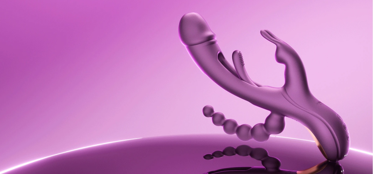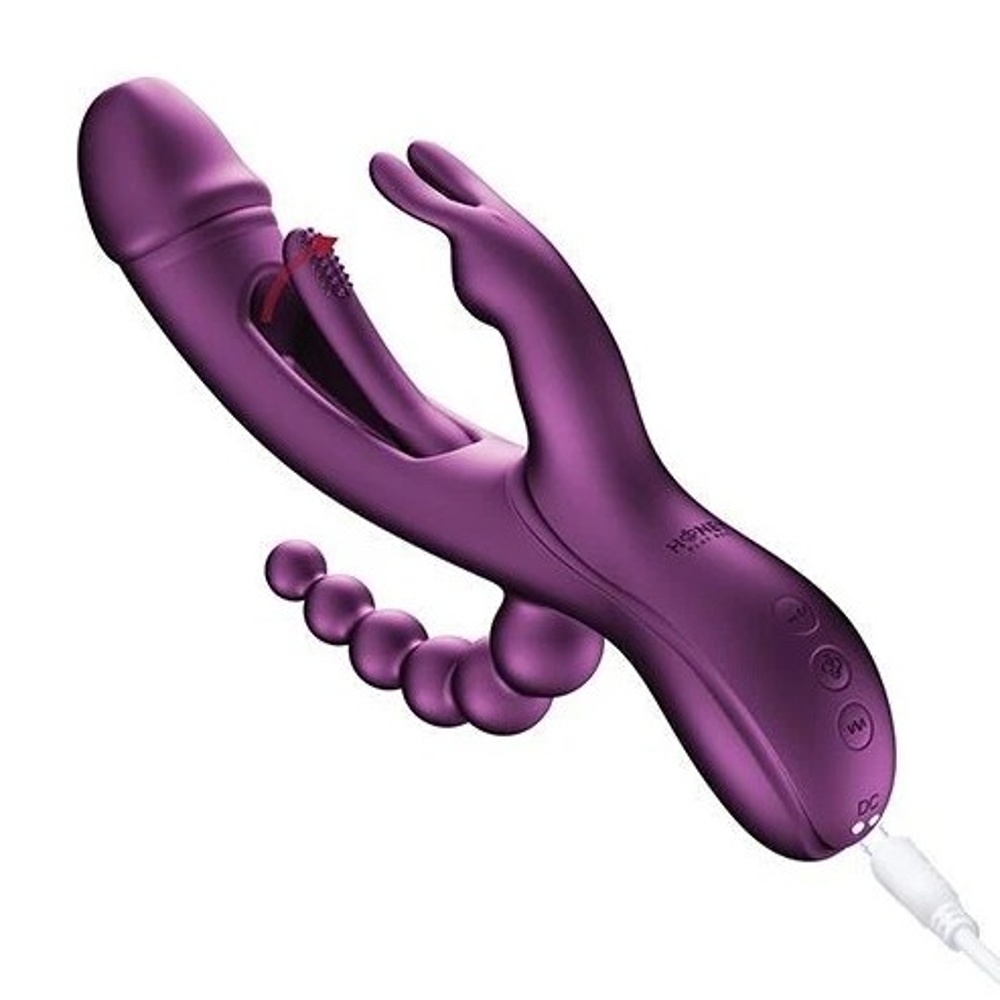 Jedinečný vibrátor atraktívneho fialového dizajnu je vyrobený z hodvábne jemného silikónu prémiovej kvality, ktorý je zamatovo mäkký, hladký na dotyk a šetrný aj k tej najcitlivejšej pokožke. Elegantné ergonomické telo zdobí realisticky tvarovaná špička v štýle odhaleného žaluďa, ktorá je decentne rozšírená a poteší každým pohybom. Uprostred tela sa týči malé rameno s textúrovanými stimulačnými hrotmi. V spodnej časti nájdete flexibilný stimulátor klitorisu s mäkkými uškami a vzadu potom nadväzujúce análne korálky, ktoré poskytujú jemne gradujúci tlak pri každom pohybe. Pohodlná rukoväť dokonale padne do dlane a ponúkne tri ľahko dostupné tlačidlá.