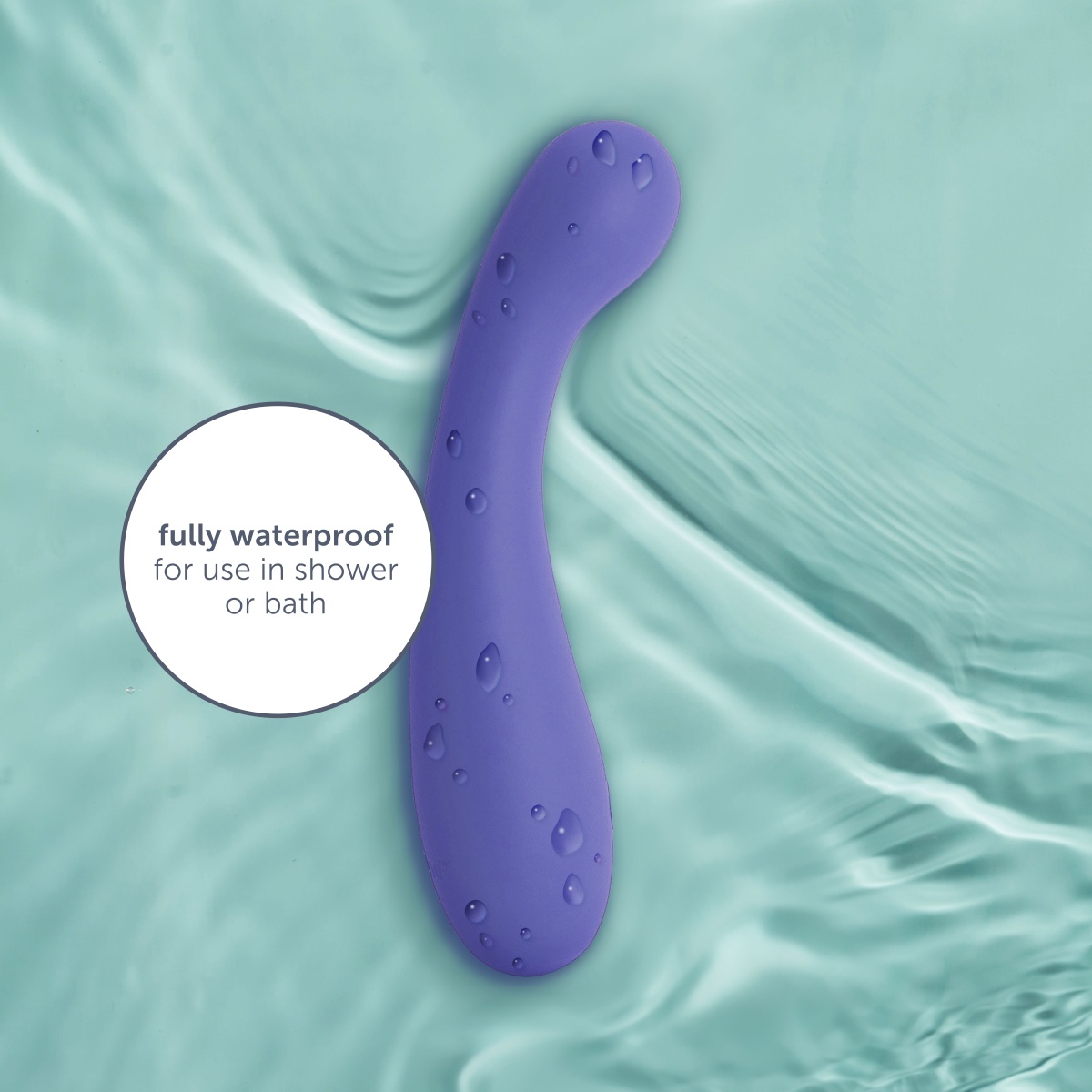 Unikátny vibrátor v elegantnom modernom dizajne fialovej farby je vyrobený z hodvábne jemného silikónu prémiovej kvality. Neobsahuje ftaláty, BPA ani latex, takže je nezávadný pre ľudskú pokožku. Jeho úžasne hladký povrch pohladí vaše partie s neuveriteľnou nežnosťou a prináša každému dotyku nový rozmer. Pevné ergonomicky zahnuté telo doplní zaguľatená špička, ktorá sa skvele prispôsobí ženskému telu. Špičkovo vyhľadá bod G a umožní hĺbkovú stimuláciu pri zachovaní zmyselného komfortu. Zosilnená rukoväť sa dobre drží v ruke a nájdete na ňu jediné ľahko dostupné ovládacie tlačidlo.