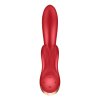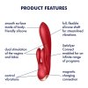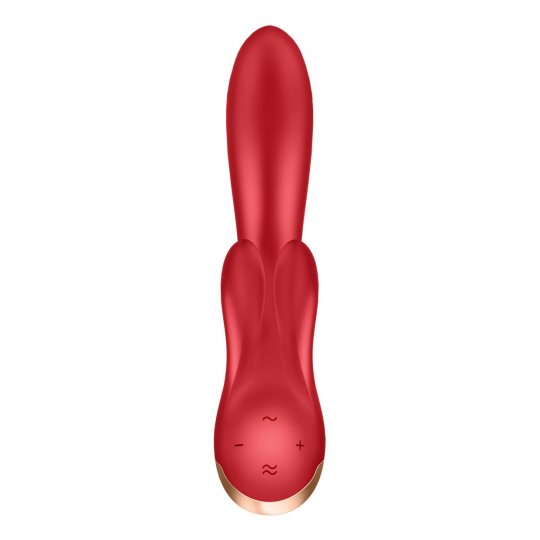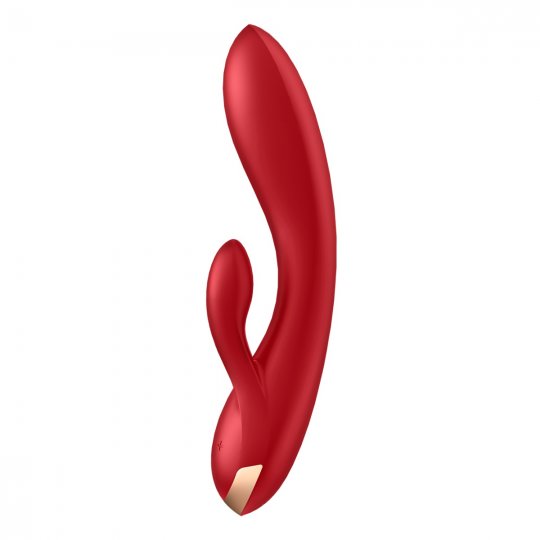Zažite nepoznané a bavte sa v rytme úžasných a zmyselných vibrácií. Tento krásavec si vás omotá okolo prsta behom okamihu. Sexy červený vibrátor DOUBLE FLEX od známej značky SATISFYER poteší aj tých najnáročnejších užívateľov. Ako prvé vás nadchne jeho hladké telo zo zamatovo hebkého a ultra jemného silikónu lekárskej kvality, ktorý pohladí vašu pokožku s tou najnežnejšou starostlivosťou. Nádherný moderný dizajn a tvary vás jednoducho budú baviť. Ozdobená rukoväť na spodnej strane z odolného ABS plastu farby ružového zlata má decentný nádych. DOUBLE FLEX je ohybný a disponuje flexibilným stimulátorom klitorisu, ktorý je tvorený dvoma veľkými a dlhými uškami. Úzka špička uľahčujúca penetráciu je ergonomicky zakrivená pre dokonalé dráždenie bodu G a perfektne sa prispôsobí vašim krivkám.