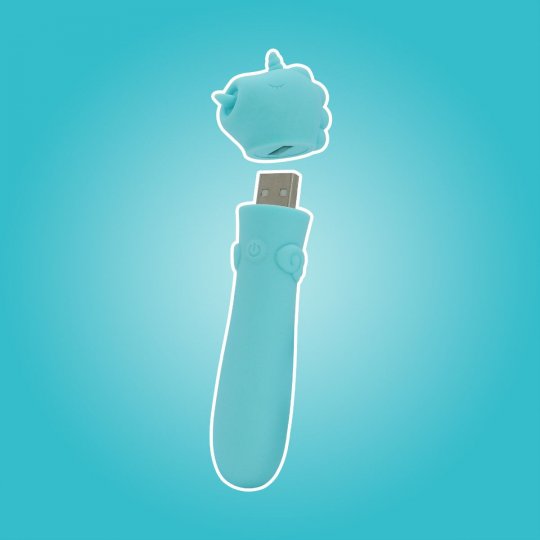 Elegantny mini vibrátor v nebesky modrej farbe je vyrobený z hodvábne jemného silikónu prvotriednej lekárskej kvality, ktorý je nezávadný pre ľudskú pokožku a pohladí vaše partie s neuveriteľnou nežnosťou. Má originálny minimalistický design jednorožca, ktorý vás očarí svojou roztomilosťou. Má pevné tenké telo s hlavičkou, ktorá sa chváli mäkkým špičatým rohom, vrúbkovanou hrivou a zmyselnými ústami s maličkým jazýčkom. Decentne rozšírené rameno sa ľahko vkladá a využijete ho k fantastickej dráždivej vnútornej stimulácii pre ešte intenzívnejšiu vášeň. Na prednej strane pod hlavičkou sa nachádza jedno ovládacie tlačidlo.